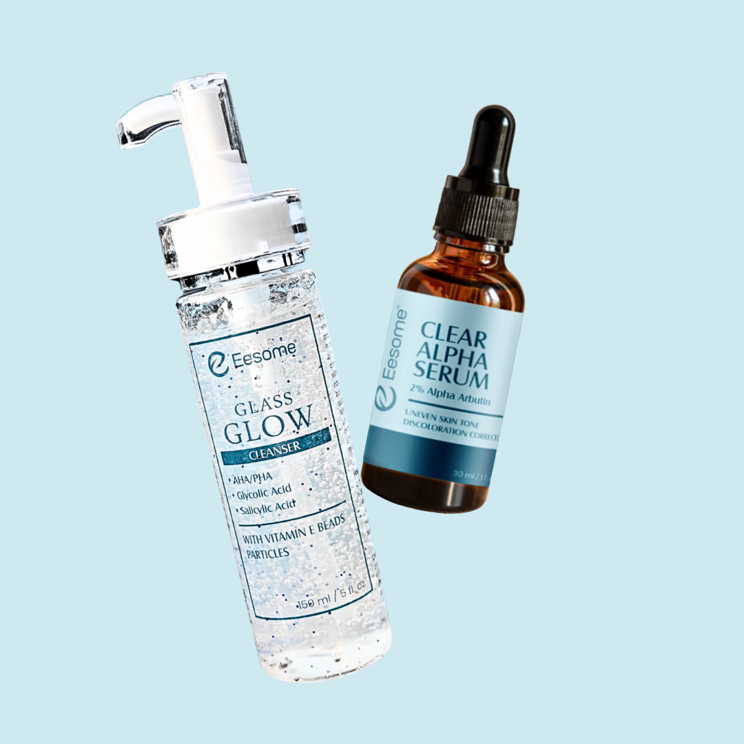 đ Block Melanin Production for Brighter Skin: Alpha arbutin in the Clear Alpha Serum inhibits excess melanin synthesis, while the Glass Glow Cleanser exfoliates pigmented cells, together preventing new dark spots and promoting a radiant glow.
